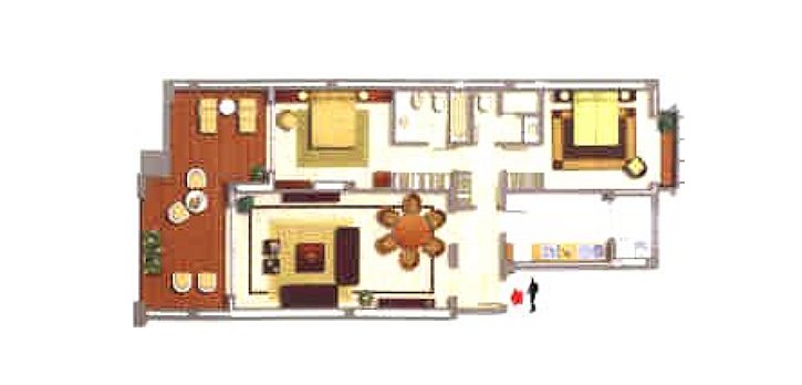 Der Grundriss zeigt eine Wohnung mit 2 Schlafzimmer und 2 Bädern.